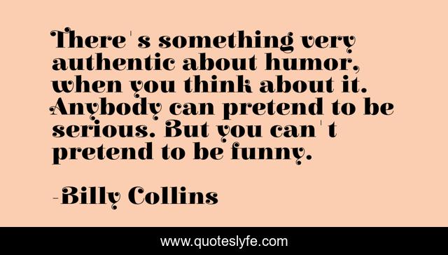 This page presents the quote "There's something very authentic about humor, when you think about it. Anybody can pretend to be serious. But you can't pretend to be funny.". Author of this quote is Billy Collins. This quote is about funny, comedy, think,.