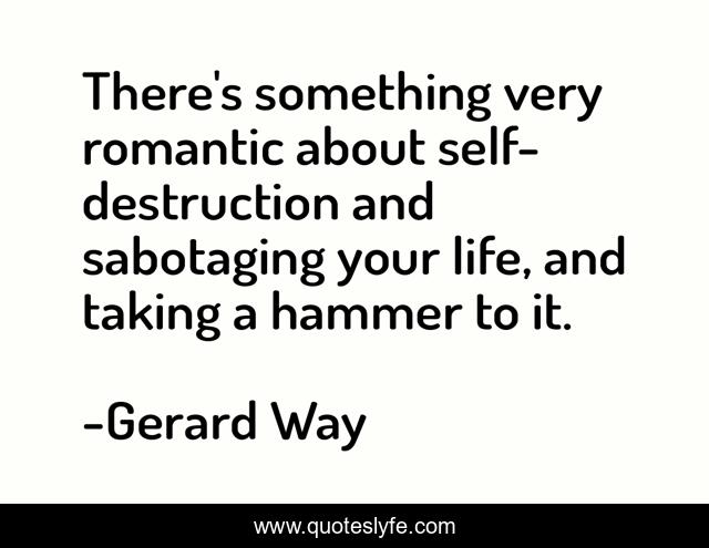 This page presents the quote "There's something very romantic about self-destruction and sabotaging your life, and taking a hammer to it.". Author of this quote is Gerard Way. This quote is about life, hammer, something,.