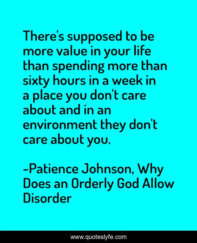 "Patience Johnson, Why Does an Orderly God Allow Disorder Quotes." Quoteslyfe.com, 2025. Fri. 05 Dec. 2025. <https://www.quoteslyfe.com/quote/There-s-supposed-to-be-more-value-47887>.