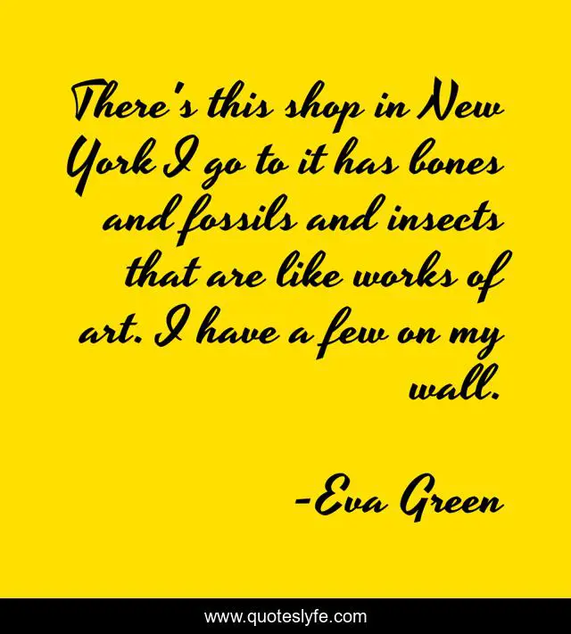 This page presents the quote "There's this shop in New York I go to it has bones and fossils and insects that are like works of art. I have a few on my wall.". Author of this quote is Eva Green. This quote is about insects, new, new york,.