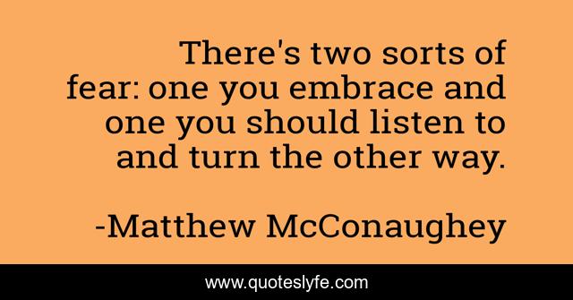 This page presents the quote "There's two sorts of fear: one you embrace and one you should listen to and turn the other way.". Author of this quote is Matthew McConaughey. This quote is about way, listen,.
