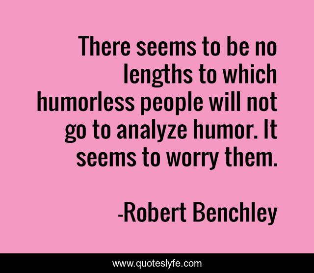 This page presents the quote "There seems to be no lengths to which humorless people will not go to analyze humor. It seems to worry them.". Author of this quote is Robert Benchley. This quote is about worry, people,.