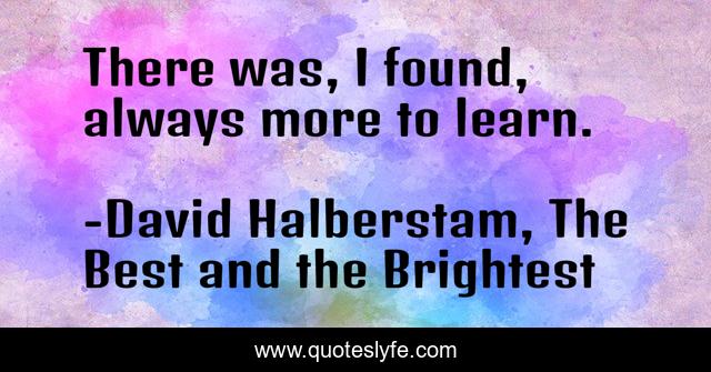 This page presents the quote "There was, I found, always more to learn.". Author of this quote is David Halberstam, The Best and the Brightest. .