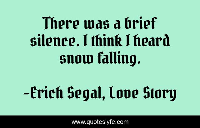 This page presents the quote "There was a brief silence. I think I heard snow falling.". Author of this quote is Erich Segal, Love Story. .