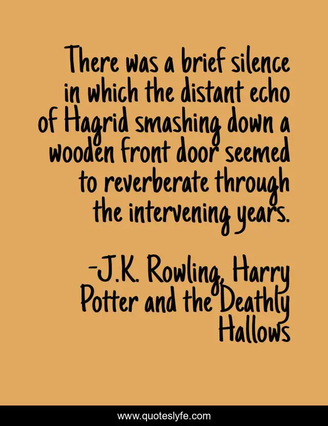 This page presents the quote "There was a brief silence in which the distant echo of Hagrid smashing down a wooden front door seemed to reverberate through the intervening years.". Author of this quote is J.K. Rowling, Harry Potter and the Deathly Hallows. .