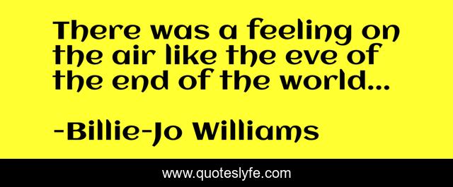 This page presents the quote "There was a feeling on the air like the eve of the end of the world...". Author of this quote is Billie-Jo Williams. This quote is about magic, romance, fantasy, adventure, action, epic,.