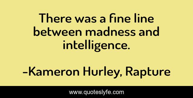 This page presents the quote "There was a fine line between madness and intelligence.". Author of this quote is Kameron Hurley, Rapture. This quote is about intelligence, madness,.