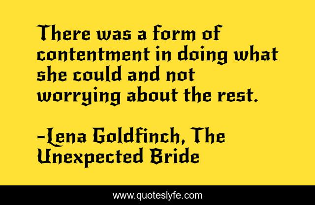 This page presents the quote "There was a form of contentment in doing what she could and not worrying about the rest.". Author of this quote is Lena Goldfinch, The Unexpected Bride. This quote is about contentment, problems, worry,.