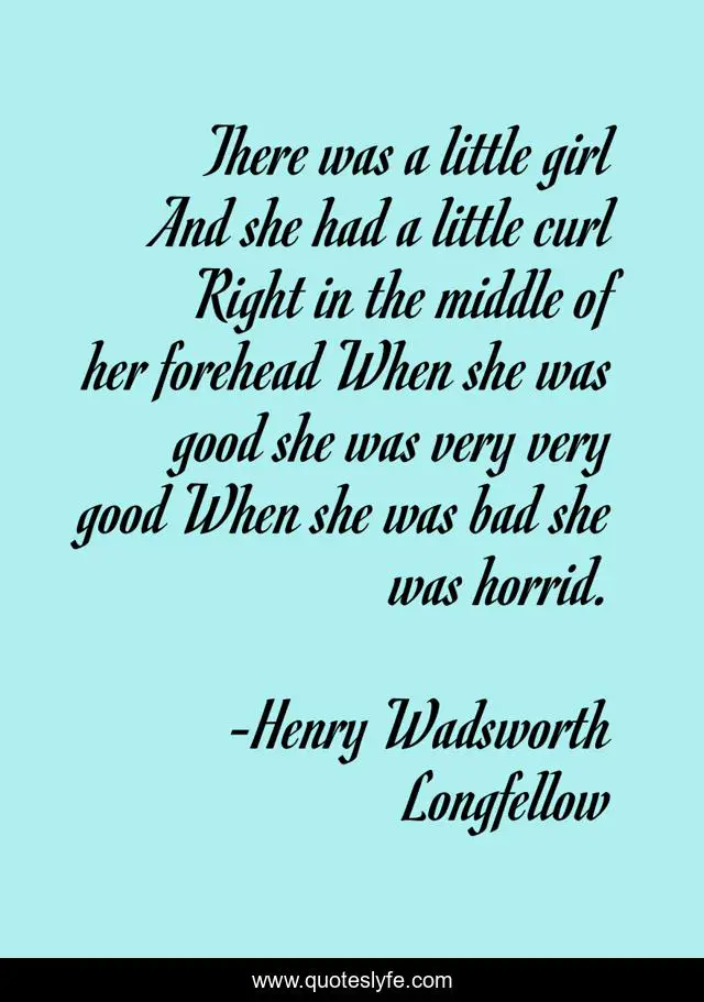 This page presents the quote "There was a little girl And she had a little curl Right in the middle of her forehead When she was good she was very very good When she was bad she was horrid.". Author of this quote is Henry Wadsworth Longfellow. .