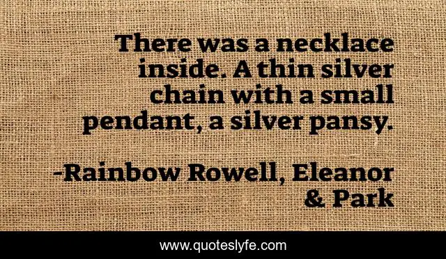 This page presents the quote "There was a necklace inside. A thin silver chain with a small pendant, a silver pansy.". Author of this quote is Rainbow Rowell, Eleanor & Park. This quote is about love, gift, affection,.