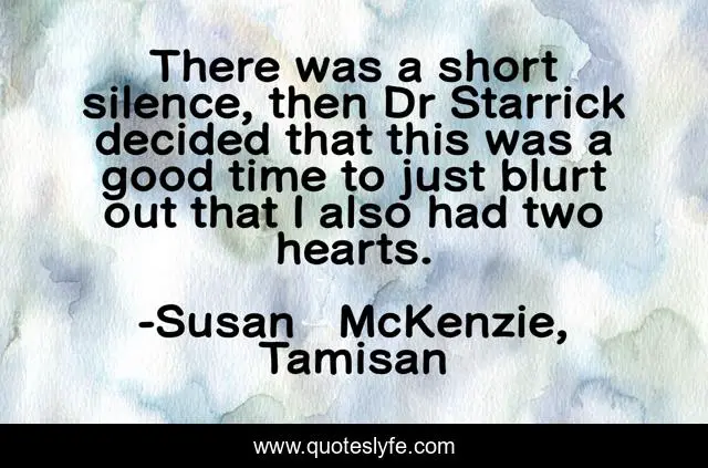 This page presents the quote "There was a short silence, then Dr Starrick decided that this was a good time to just blurt out that I also had two hearts.". Author of this quote is Susan McKenzie, Tamisan. This quote is about paranormal-romance, sci-fi-romance,.