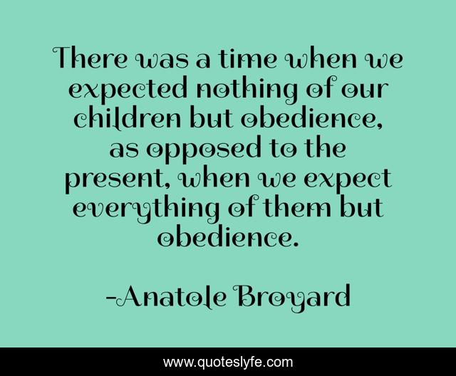 This page presents the quote "There was a time when we expected nothing of our children but obedience, as opposed to the present, when we expect everything of them but obedience.". Author of this quote is Anatole Broyard. .