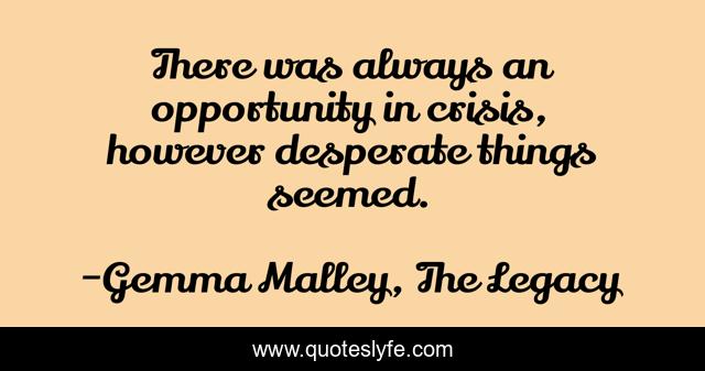 "Gemma Malley, The Legacy Quotes." Quoteslyfe.com, 2025. Fri. 05 Dec. 2025. <https://www.quoteslyfe.com/quote/There-was-always-an-opportunity-in-crisis-189176>.