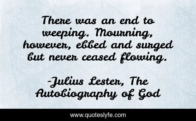 This page presents the quote "There was an end to weeping. Mourning, however, ebbed and surged but never ceased flowing.". Author of this quote is Julius Lester, The Autobiography of God. .