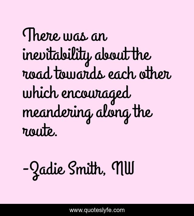This page presents the quote "There was an inevitability about the road towards each other which encouraged meandering along the route.". Author of this quote is Zadie Smith, NW. .