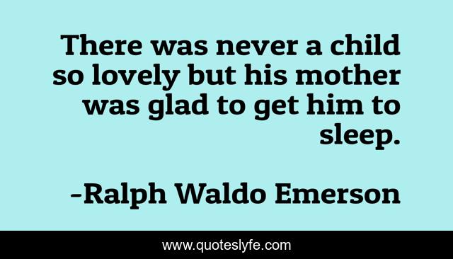 This page presents the quote "There was never a child so lovely but his mother was glad to get him to sleep.". Author of this quote is Ralph Waldo Emerson. This quote is about mother, sleep, child,.
