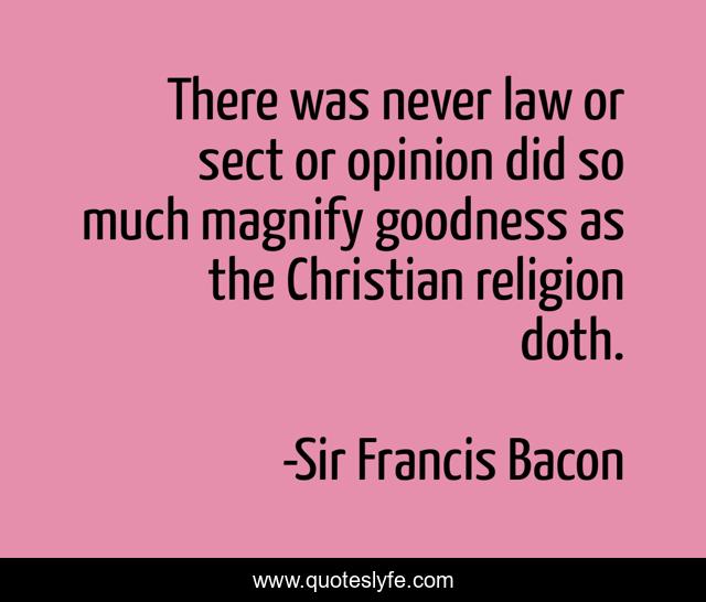 This page presents the quote "There was never law or sect or opinion did so much magnify goodness as the Christian religion doth.". Author of this quote is Sir Francis Bacon. .