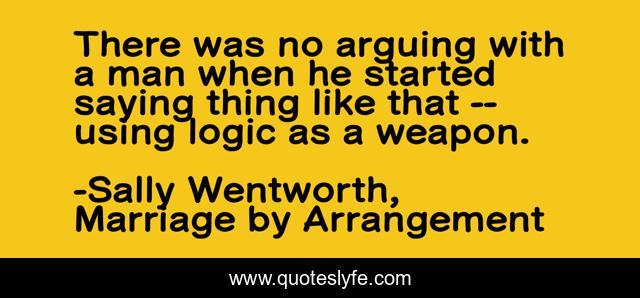 This page presents the quote "There was no arguing with a man when he started saying thing like that -- using logic as a weapon.". Author of this quote is Sally Wentworth, Marriage by Arrangement. This quote is about weapon, men, argument, logical, logic, argue,.