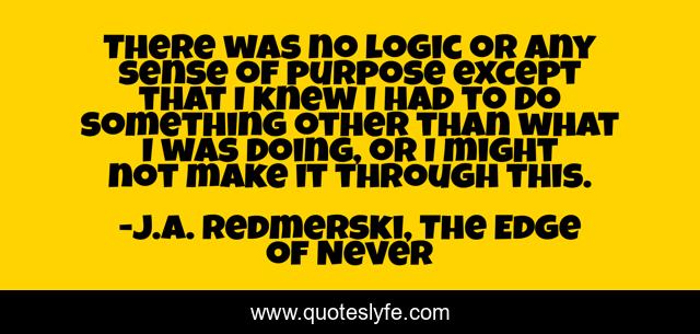 This page presents the quote "There was no logic or any sense of purpose except that I knew I had to do something other than what I was doing, or I might not make it through this.". Author of this quote is J.A. Redmerski, The Edge of Never. This quote is about life, death, j-a-redmerski, the-edge-of-never, purpose, logic,.