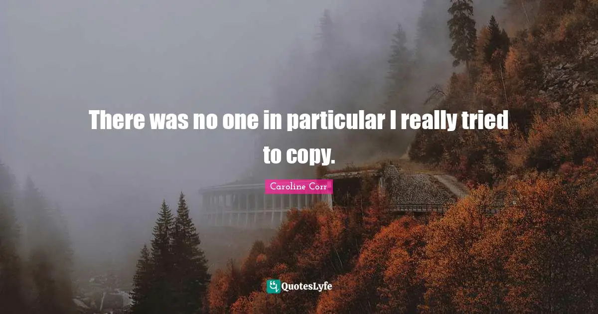 This page presents the quote "There was no one in particular I really tried to copy.". Author of this quote is Caroline Corr. This quote is about particular, copies,.