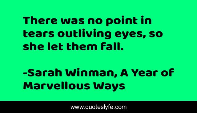 This page presents the quote "There was no point in tears outliving eyes, so she let them fall.". Author of this quote is Sarah Winman, A Year of Marvellous Ways. .