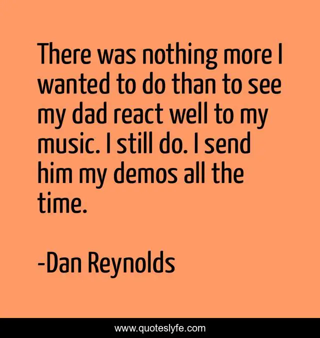 This page presents the quote "There was nothing more I wanted to do than to see my dad react well to my music. I still do. I send him my demos all the time.". Author of this quote is Dan Reynolds. This quote is about react, see, time,.