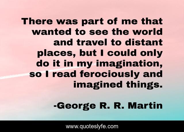 This page presents the quote "There was part of me that wanted to see the world and travel to distant places, but I could only do it in my imagination, so I read ferociously and imagined things.". Author of this quote is George R. R. Martin. This quote is about me, imagination, world,.