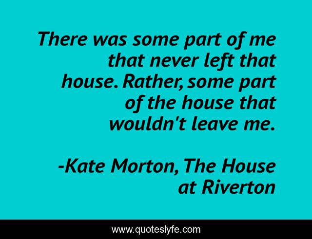 This page presents the quote "There was some part of me that never left that house. Rather, some part of the house that wouldn't leave me.". Author of this quote is Kate Morton, The House at Riverton. This quote is about home, romantic, history,.