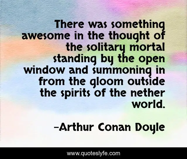 This page presents the quote "There was something awesome in the thought of the solitary mortal standing by the open window and summoning in from the gloom outside the spirits of the nether world.". Author of this quote is Arthur Conan Doyle. This quote is about horror, gothic,.