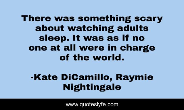 This page presents the quote "There was something scary about watching adults sleep. It was as if no one at all were in charge of the world.". Author of this quote is Kate DiCamillo, Raymie Nightingale. This quote is about trust, adults,.