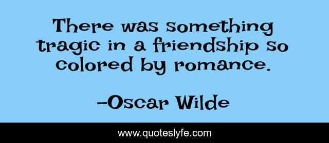 This page presents the quote "There was something tragic in a friendship so colored by romance.". Author of this quote is Oscar Wilde. This quote is about oscar-wilde, dorian-gray,.