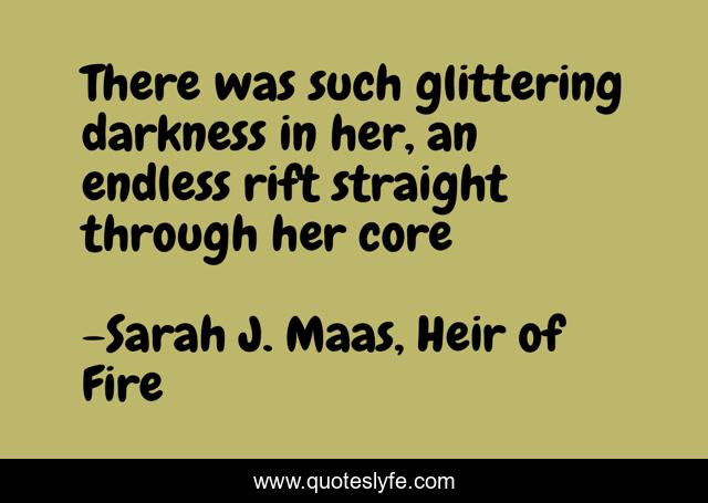This page presents the quote "There was such glittering darkness in her, an endless rift straight through her core". Author of this quote is Sarah J. Maas, Heir of Fire. This quote is about darkness, heir-of-fire,.