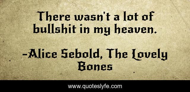 This page presents the quote "There wasn't a lot of bullshit in my heaven.". Author of this quote is Alice Sebold, The Lovely Bones. This quote is about afterlife, life, comedy, funny,.