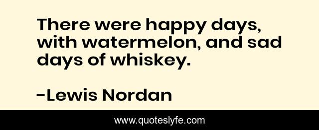 This page presents the quote "There were happy days, with watermelon, and sad days of whiskey.". Author of this quote is Lewis Nordan. This quote is about sadness, happiness,.