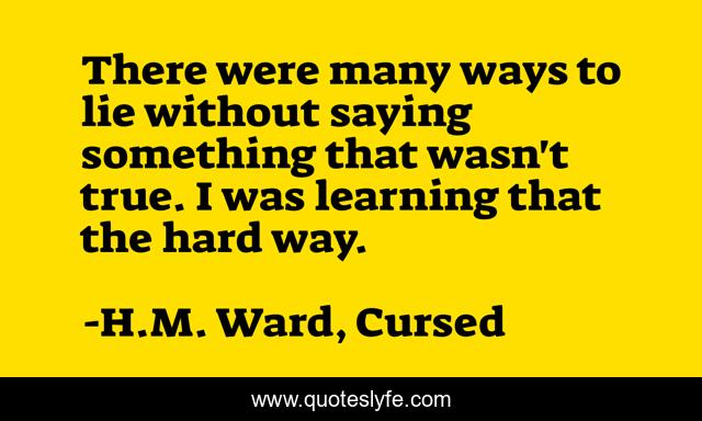 This page presents the quote "There were many ways to lie without saying something that wasn't true. I was learning that the hard way.". Author of this quote is H.M. Ward, Cursed. This quote is about lies, life-lessons,.