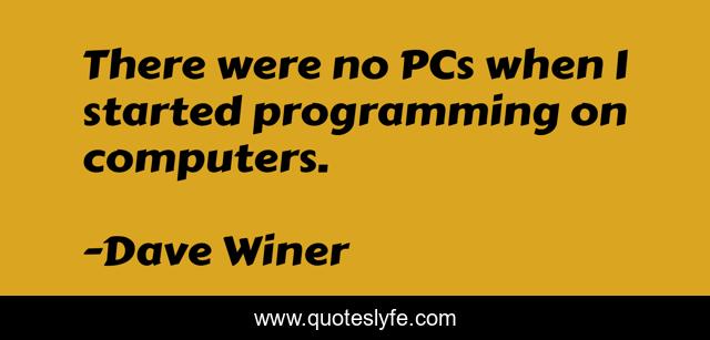 This page presents the quote "There were no PCs when I started programming on computers.". Author of this quote is Dave Winer. This quote is about started, programming,.