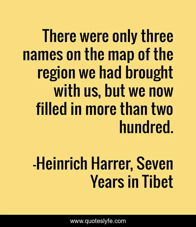 This page presents the quote "There were only three names on the map of the region we had brought with us, but we now filled in more than two hundred.". Author of this quote is Heinrich Harrer, Seven Years in Tibet. This quote is about himalayas, exploration, travel, tibet,.