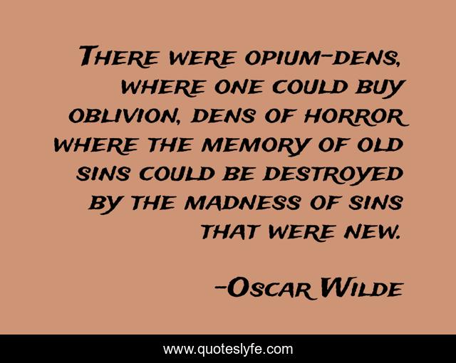 This page presents the quote "There were opium-dens, where one could buy oblivion, dens of horror where the memory of old sins could be destroyed by the madness of sins that were new.". Author of this quote is Oscar Wilde. This quote is about oscar-wilde, the-picture-of-dorian-gray,.