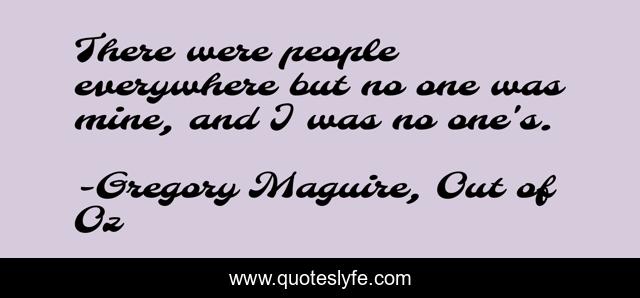 This page presents the quote "There were people everywhere but no one was mine, and I was no one's.". Author of this quote is Gregory Maguire, Out of Oz. .