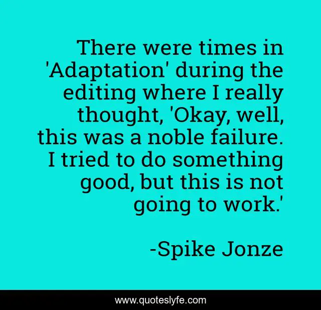 This page presents the quote "There were times in 'Adaptation' during the editing where I really thought, 'Okay, well, this was a noble failure. I tried to do something good, but this is not going to work.'". Author of this quote is Spike Jonze. This quote is about thought, good, work,.