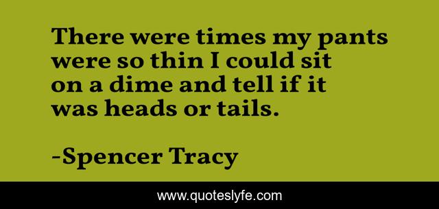 This page presents the quote "There were times my pants were so thin I could sit on a dime and tell if it was heads or tails.". Author of this quote is Spencer Tracy. .