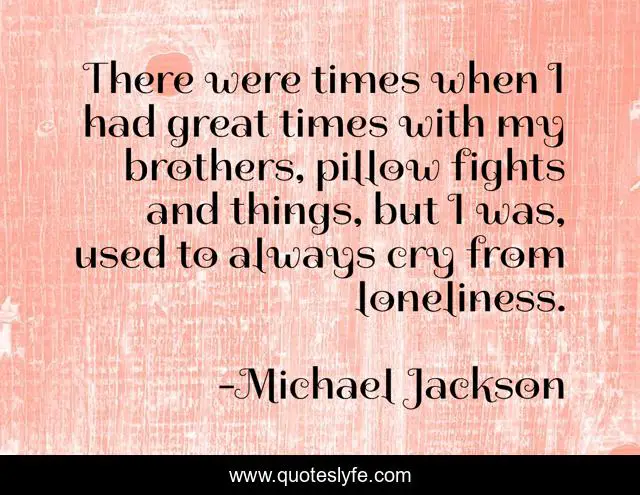This page presents the quote "There were times when I had great times with my brothers, pillow fights and things, but I was, used to always cry from loneliness.". Author of this quote is Michael Jackson. This quote is about always, loneliness, pillow,.
