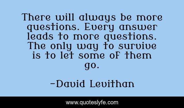 This page presents the quote "There will always be more questions. Every answer leads to more questions. The only way to survive is to let some of them go.". Author of this quote is David Levithan. This quote is about truth-of-life, wise, mindfulness,.