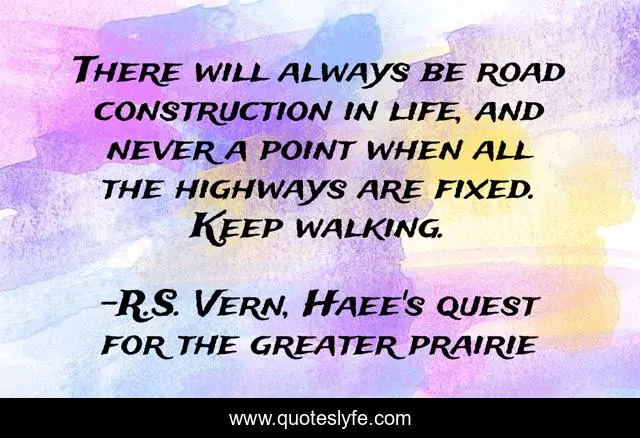"R.S. Vern, Haee's quest for the greater prairie Quotes." Quoteslyfe.com, 2025. Sun. 07 Dec. 2025. <https://www.quoteslyfe.com/quote/There-will-always-be-road-construction-in-222762>.