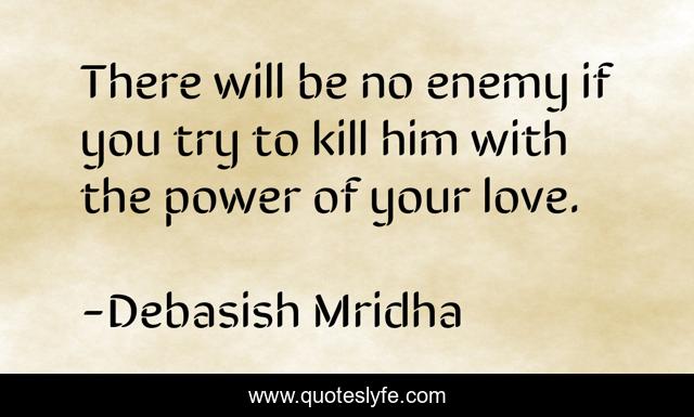 This page presents the quote "There will be no enemy if you try to kill him with the power of your love.". Author of this quote is Debasish Mridha. This quote is about life, love, knowledge, inspirational, intelligence, philosophy, wisdom, quotes, affection,.