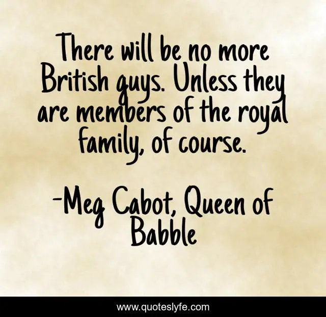 "Meg Cabot, Queen of Babble Quotes." Quoteslyfe.com, 2025. Fri. 05 Dec. 2025. <https://www.quoteslyfe.com/quote/There-will-be-no-more-British-guys-1625>.