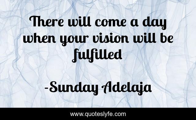 This page presents the quote "There will come a day when your vision will be fulfilled". Author of this quote is Sunday Adelaja. This quote is about fulfilled, day, vision,.