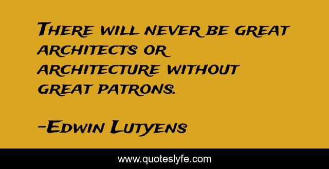 This page presents the quote "There will never be great architects or architecture without great patrons.". Author of this quote is Edwin Lutyens. .