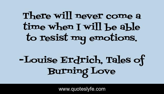 This page presents the quote "There will never come a time when I will be able to resist my emotions.". Author of this quote is Louise Erdrich, Tales of Burning Love. This quote is about emotion, stoicism,.
