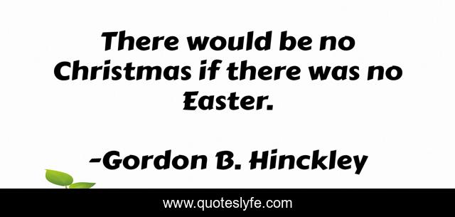This page presents the quote "There would be no Christmas if there was no Easter.". Author of this quote is Gordon B. Hinckley. This quote is about religion, christian, easter, christmas, god,.